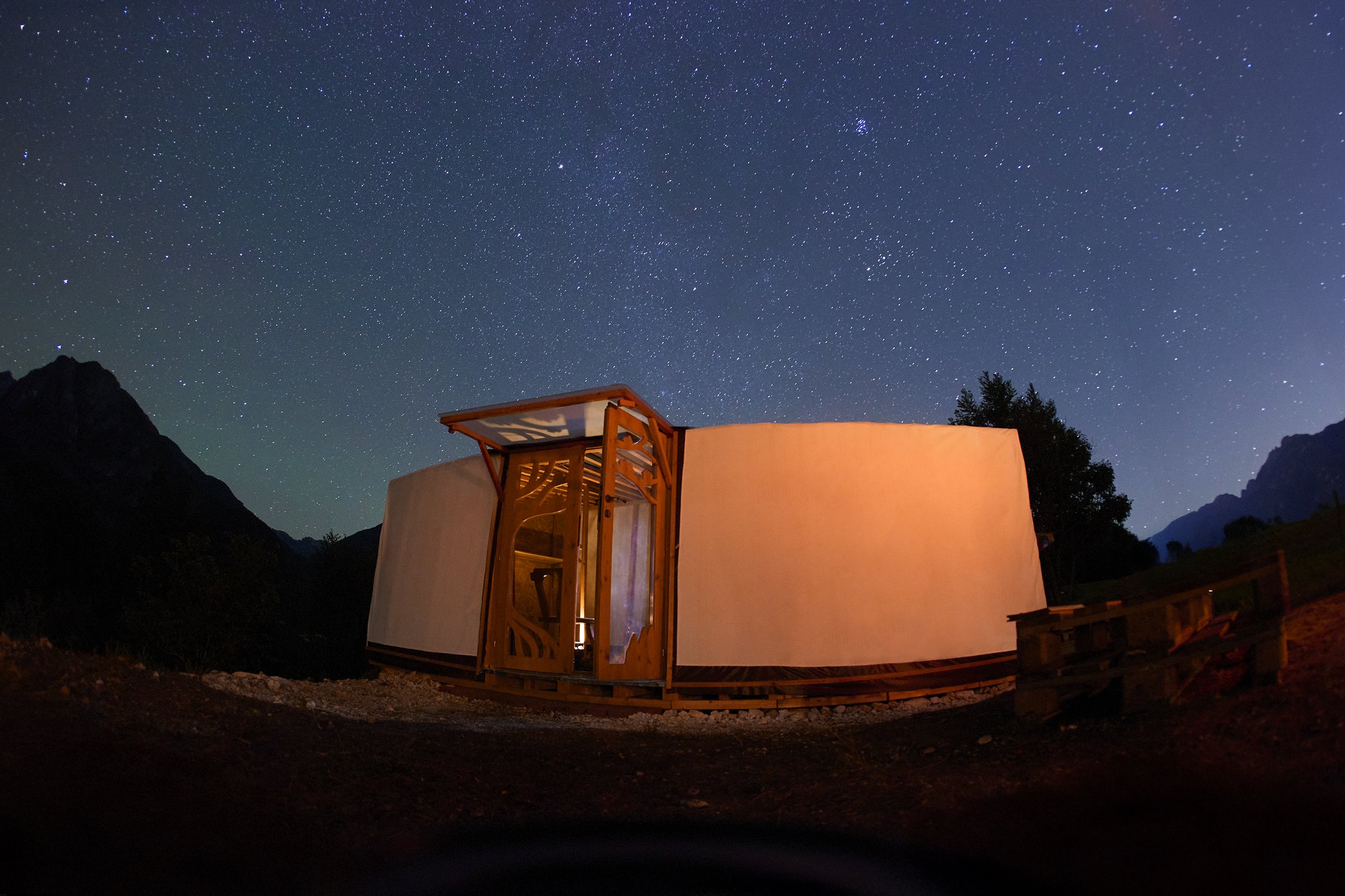 Immersa nel paesaggio di Stavoli, a Moggio Udinese, sorge la nostra yurta: uno spazio che unisce l'antica saggezza nomade all'energia di un territorio autentico e selvaggio.